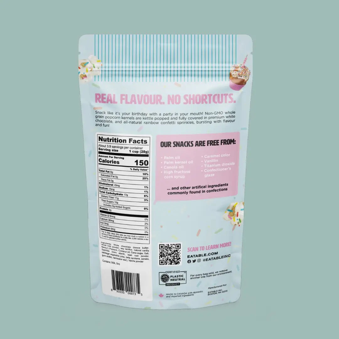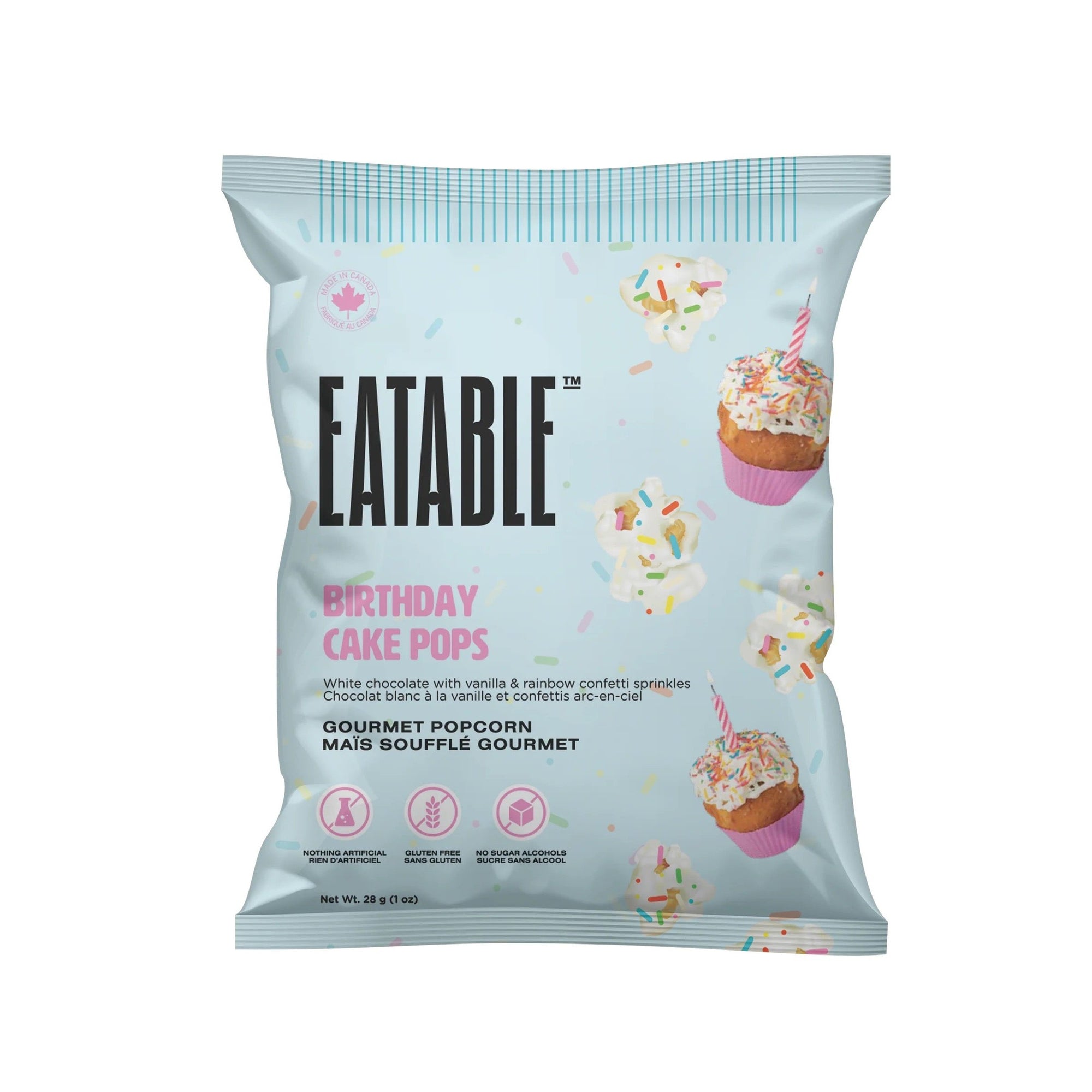Pop into a world of flavor with a bag of Birthday Cake Pops! This non-GMO, kettle-popped treat is coated in premium white chocolate and natural rainbow confetti sprinkles.