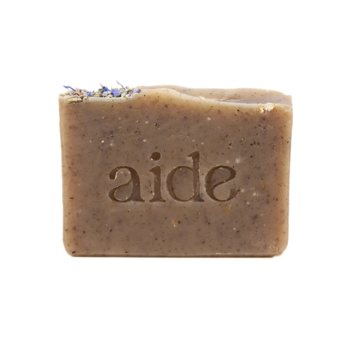 Ingredients:  coconut oil, olive oil, sustainable forest palm oil, gmo-free canola oil, fair trade shea butter,* rice bran oil, castor oil, lavender essential oil, colloidal oatmeal, oatmeal,* alkanet root, lavender flower, cornflower & rosemary extract *organic