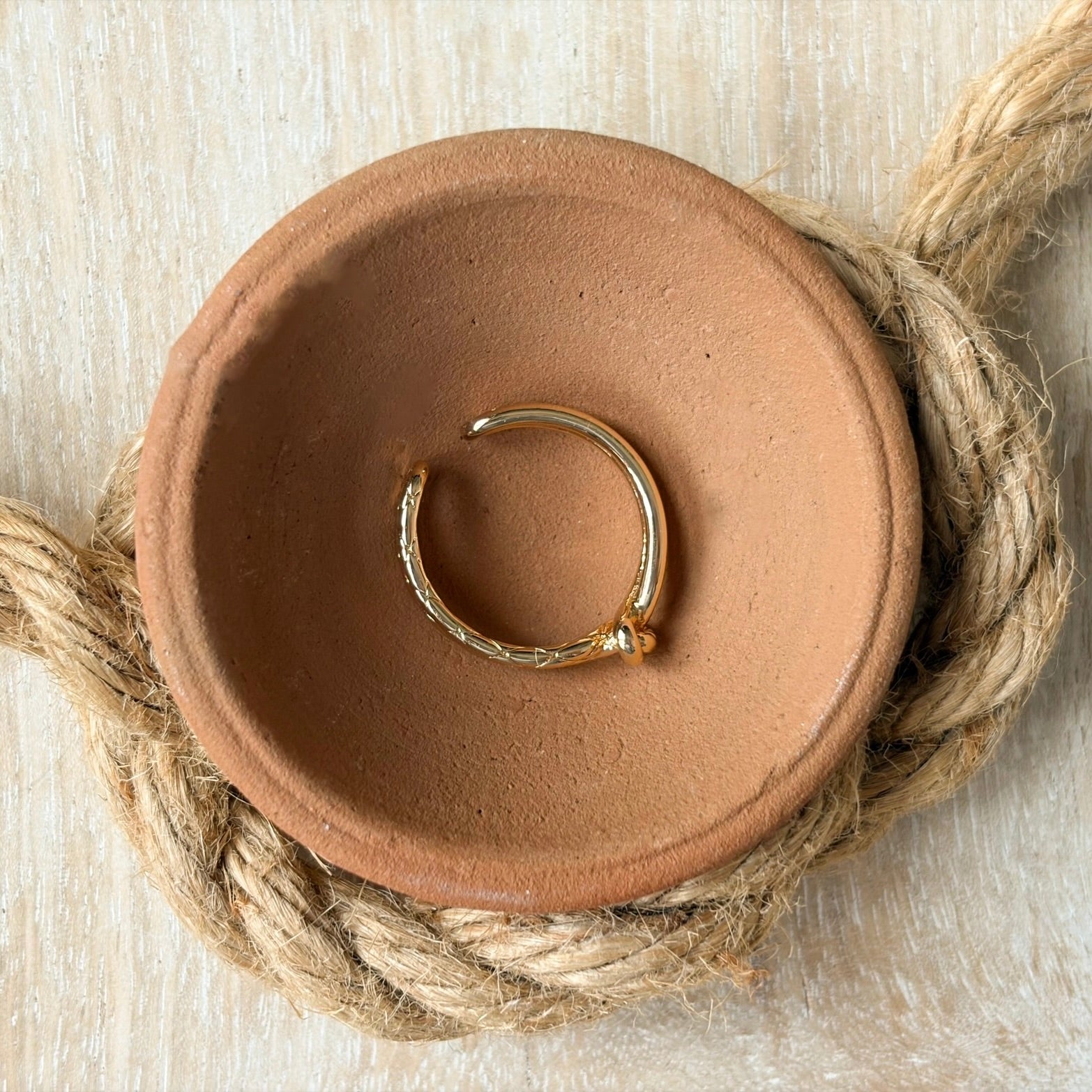 The open, adjustable band offers a comfortable fit for most finger sizes—perfect for stacking or wearing solo as a statement.
