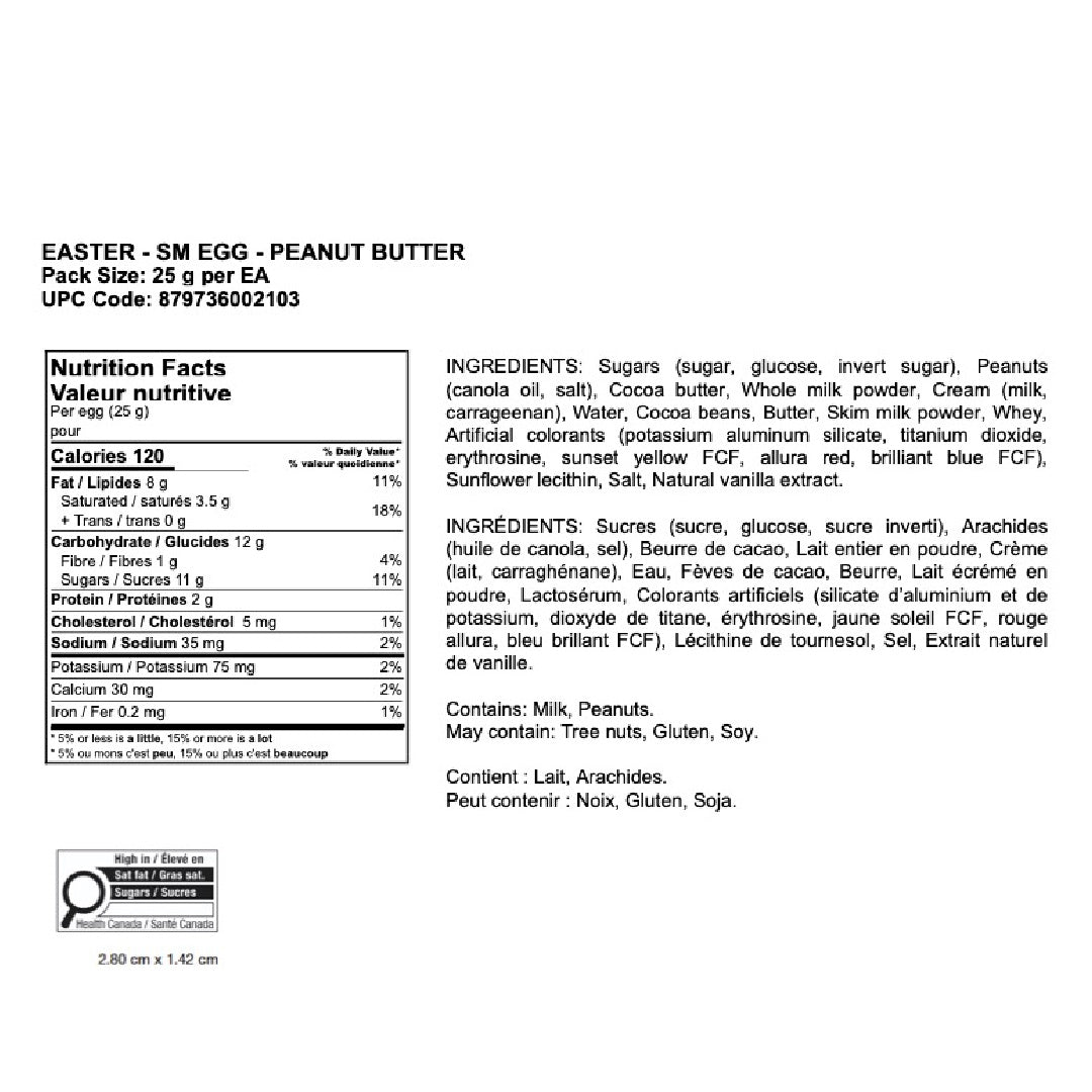 Contains: Milk, Peanuts. May contain: Tree nuts, Gluten, Soy.