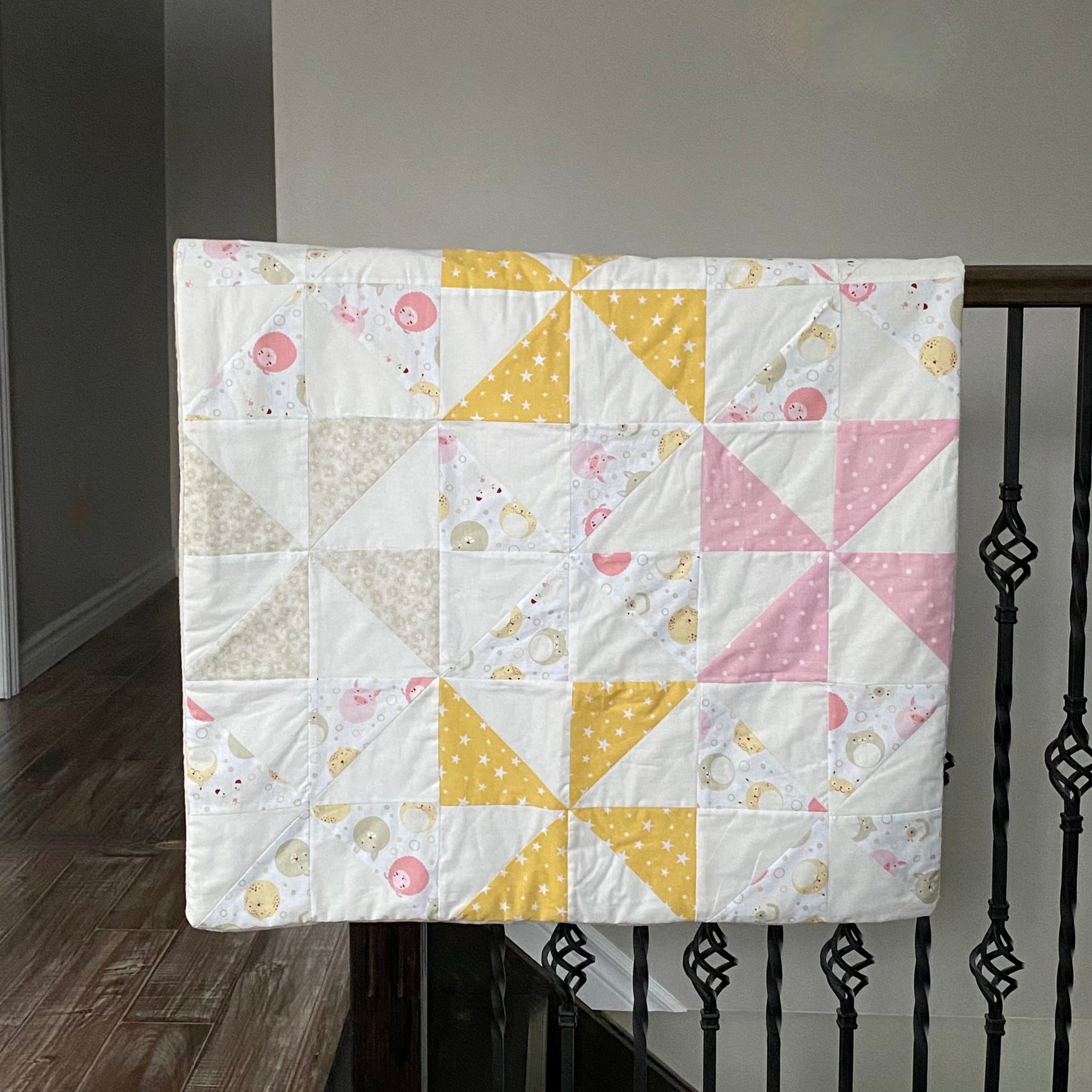 Baby Quilt | Pink, Sand, Mustard Yellow