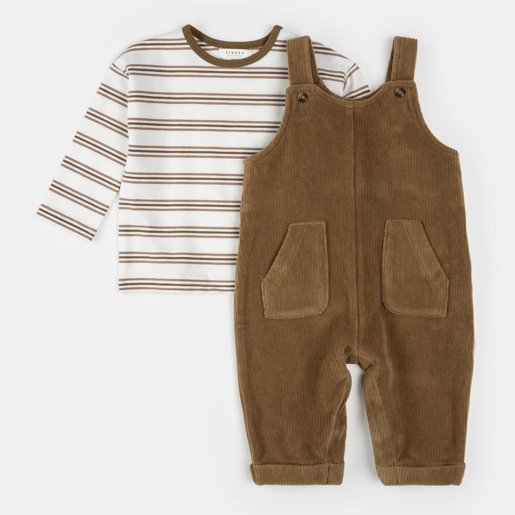 A classic overall set designed for comfort, practicality and a timeless style. The neutral set includes a long-sleeved stripy top and cozy corduroy overalls. Perfect for little ones on the move, this set is soft and breathable and offers plenty of flexibility.